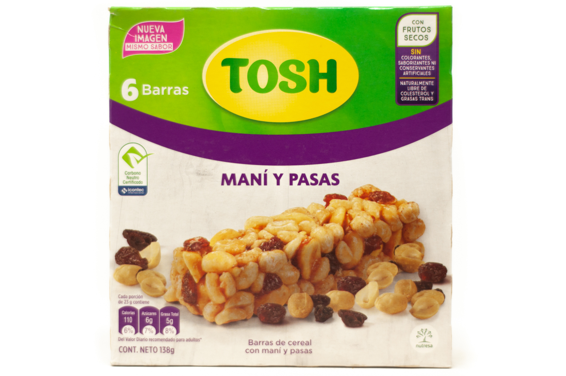 BARRA DE CEREAL TOSH CON MANI Y PASAS 6 UND 138 G